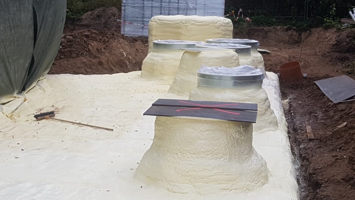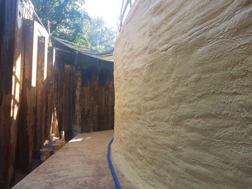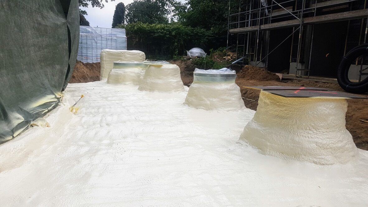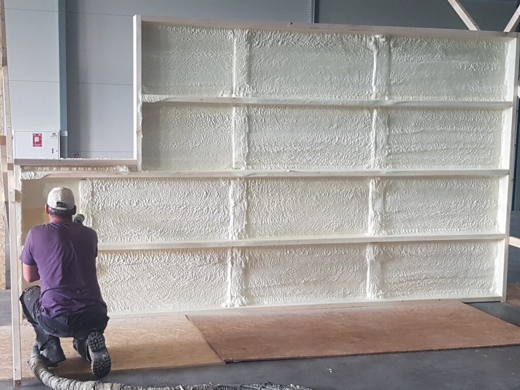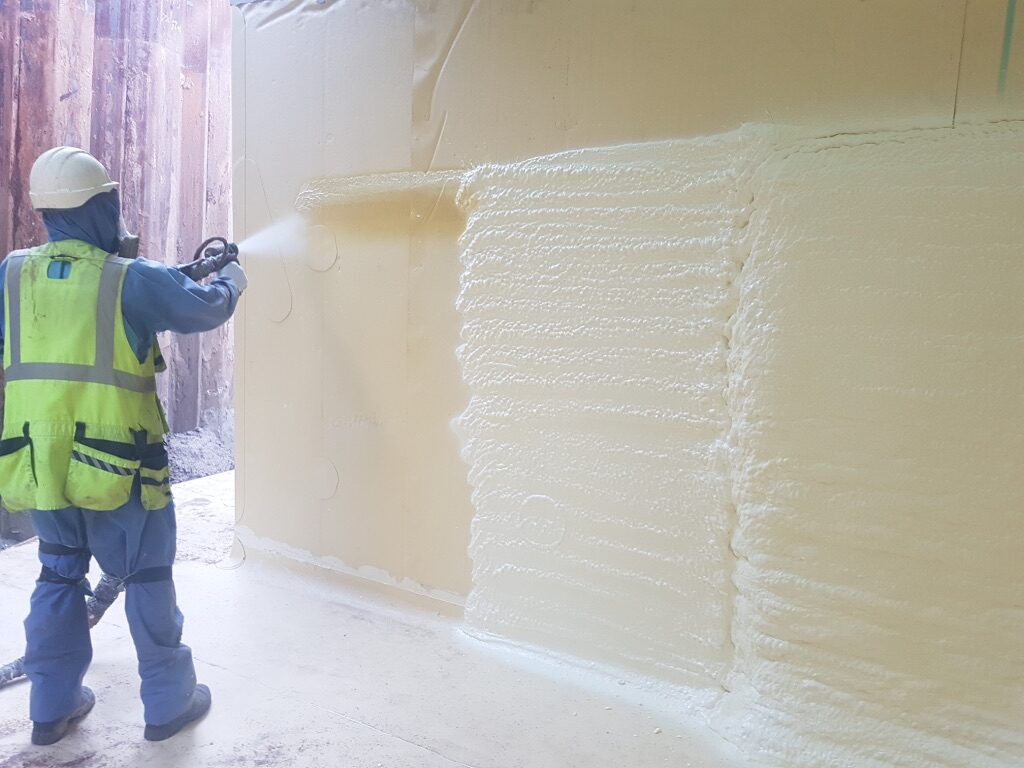 Poliuretāna putas tiek saražotas objektā uz vietas sajaucot
