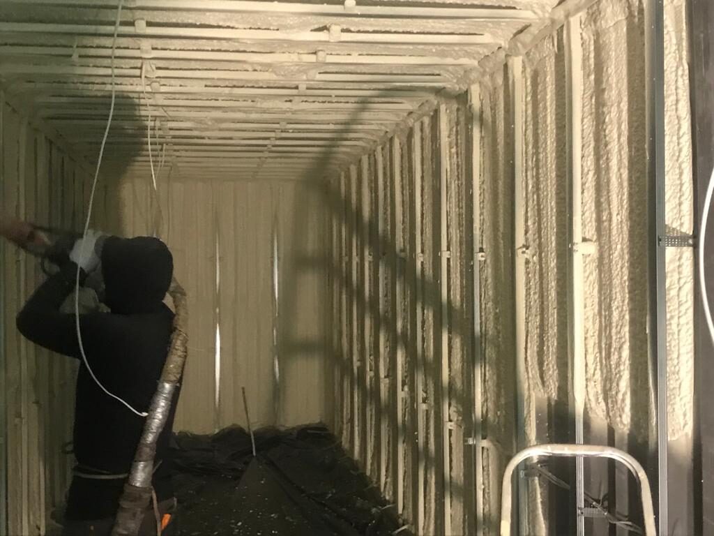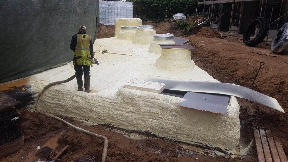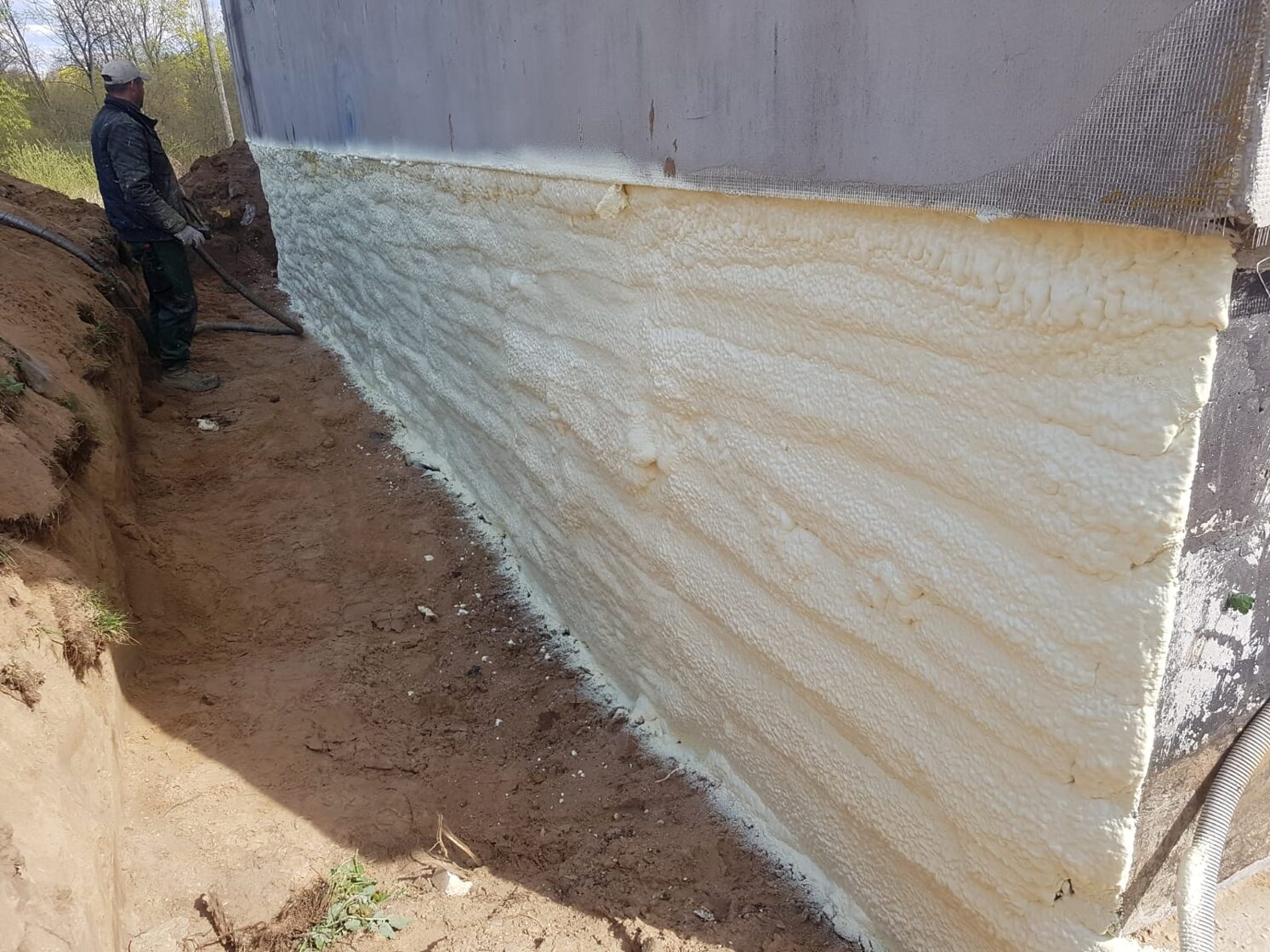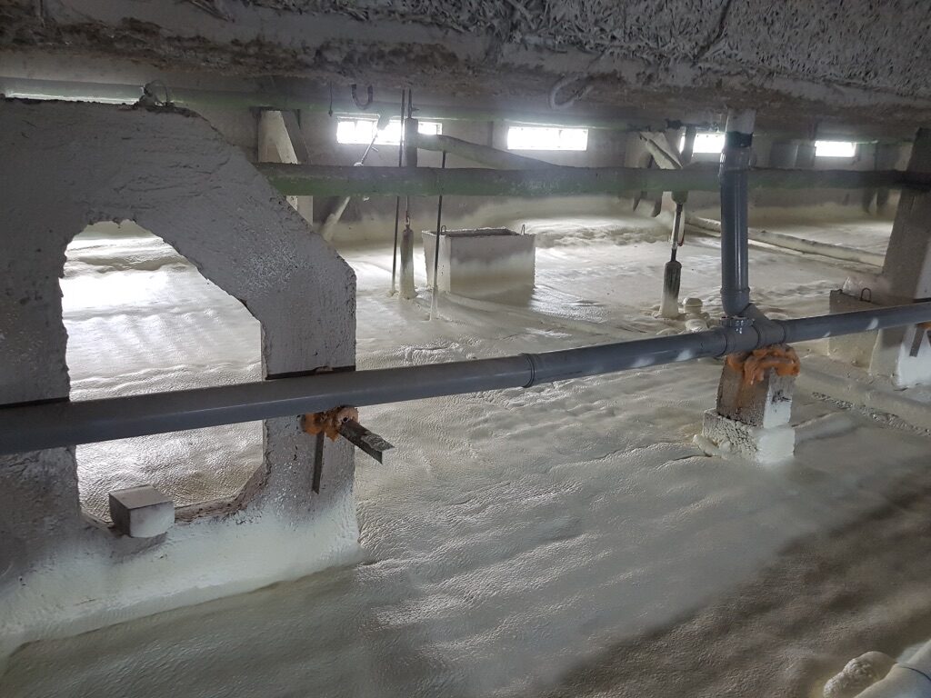 Poliuretāna putas tiek saražotas objektā uz vietas sajaucot
